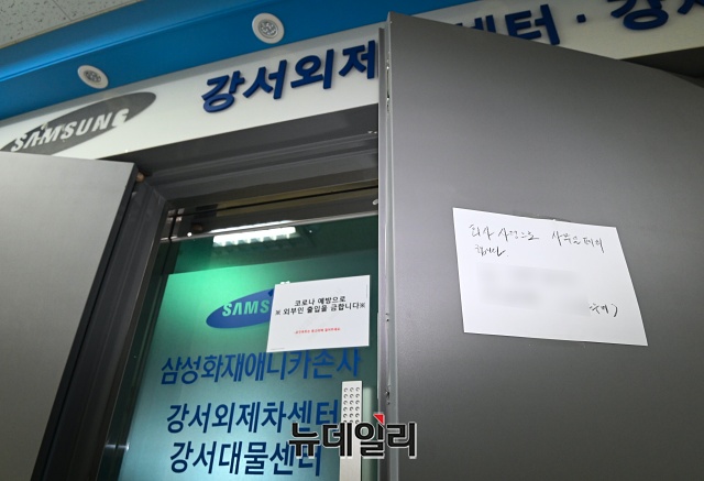 '코로나19(중국 우한 폐렴)' 확진자가 발생한 서울 강서구 애니카 손해사정 사무실에 10일 오후 폐쇄 안내문이 붙어있다.서울시는 4일 회사 직원 1명이 최초 확진된 후 현재까지 35명이 확진됐다고 밝혔다. 보험회사 직원, 가족 및 지인 등 접촉자 포함 총 1,555명을 검사해 최초 확진자를 제외하고 양성 34명, 음성 1521명으로 확인됐다.중앙방역대책본부는 10일 오전 0시 기준 국내 지역감염 환자 71명, 해외유입 환자 29명으로 총 100명이 확진됐다고 밝혔다. 누적 확진자는 2만7,653명이다.