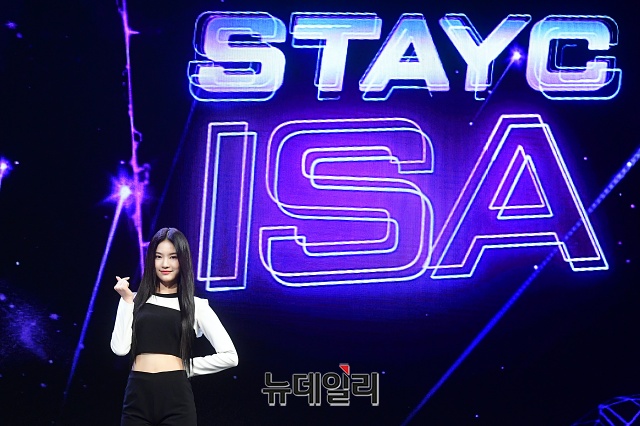 걸그룹 STAYC(스테이씨) 멤버 이사가 12일 오후 서울 광진구 예스24 라이브홀에서 열린 첫번째 싱글 'Star To A Young Culture(스타 투 어 영 컬쳐)' 쇼케이스에서 포토타임을 갖고 있다.