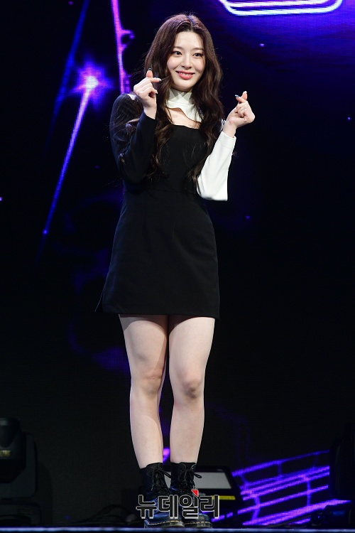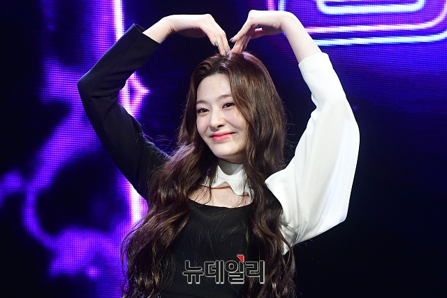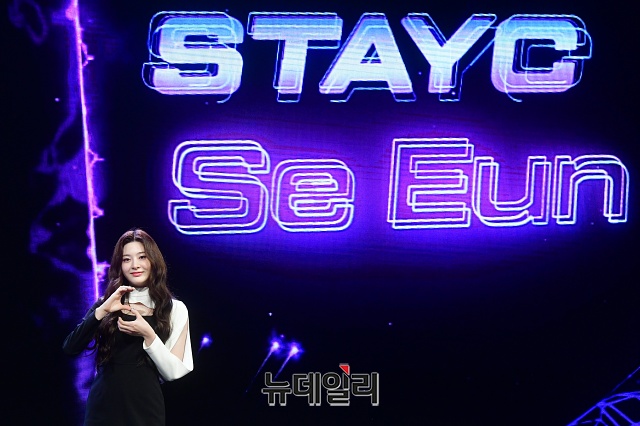 걸그룹 STAYC(스테이씨) 멤버 세은이 12일 오후 서울 광진구 예스24 라이브홀에서 열린 첫번째 싱글 'Star To A Young Culture(스타 투 어 영 컬쳐)' 쇼케이스에서 포토타임을 갖고 있다.
