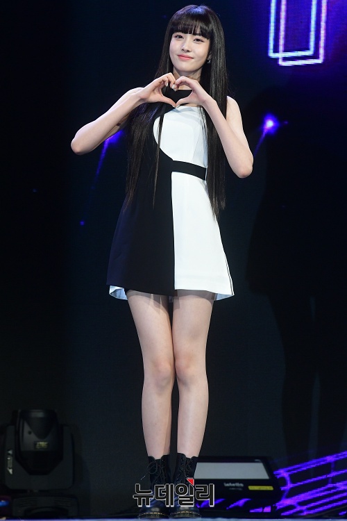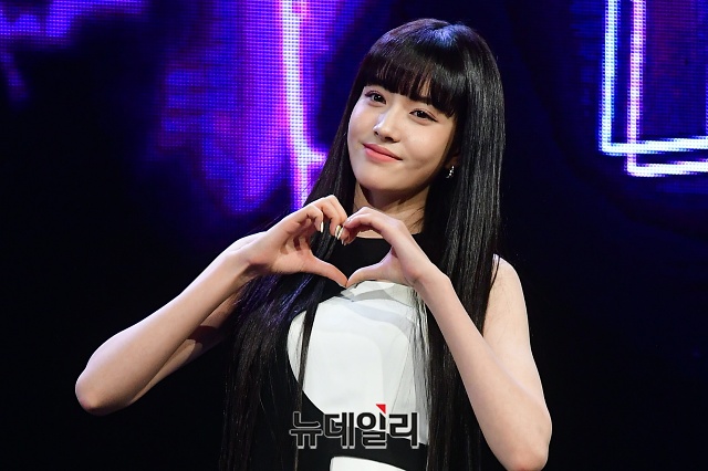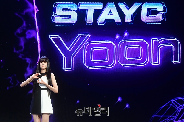걸그룹 STAYC(스테이씨) 멤버 윤이 12일 오후 서울 광진구 예스24 라이브홀에서 열린 첫번째 싱글 'Star To A Young Culture(스타 투 어 영 컬쳐)' 쇼케이스에서 포토타임을 갖고 있다.