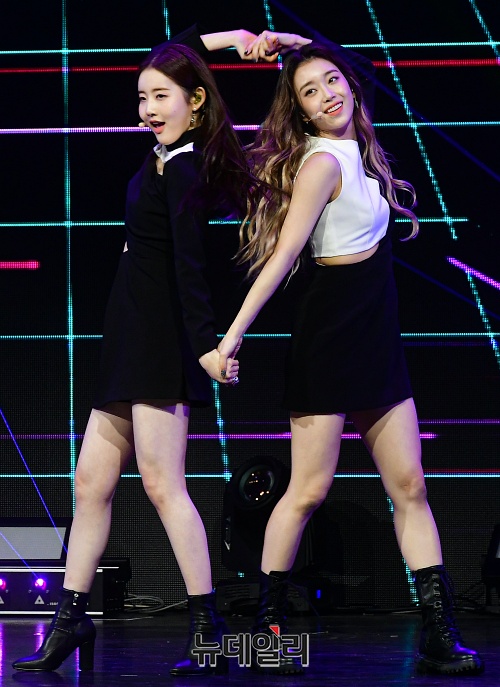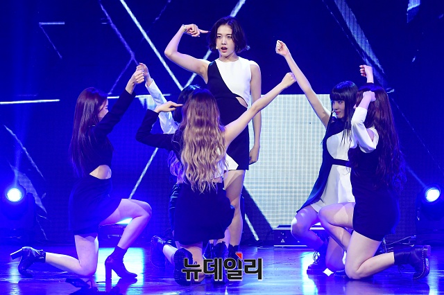 걸그룹 STAYC(스테이씨)가 12일 오후 서울 광진구 예스24 라이브홀에서 열린 첫번째 싱글 'Star To A Young Culture(스타 투 어 영 컬쳐)' 쇼케이스에서 무대를 선보이고 있다.