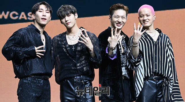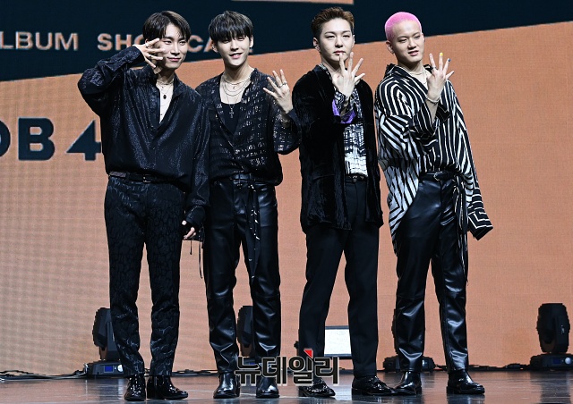 아이돌그룹 비투비 포유(BTOB 4U)가 16일 오후 서울 광진구 예스24 라이브홀에서 열린 미니 1집 '인사이드(INSIDE)' 쇼케이스에서 포토타임을 갖고 있다.