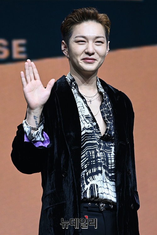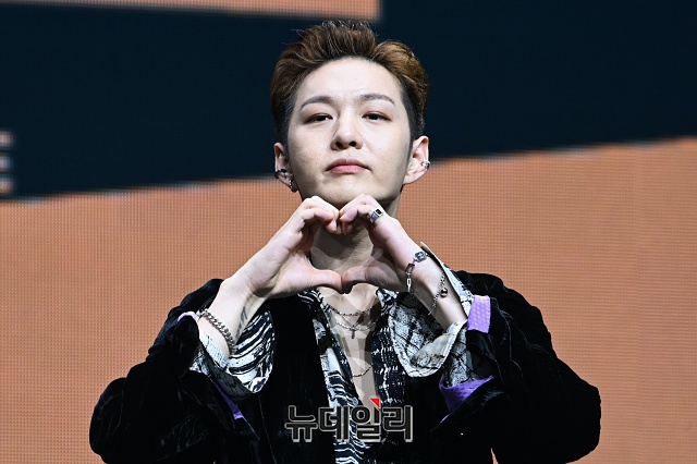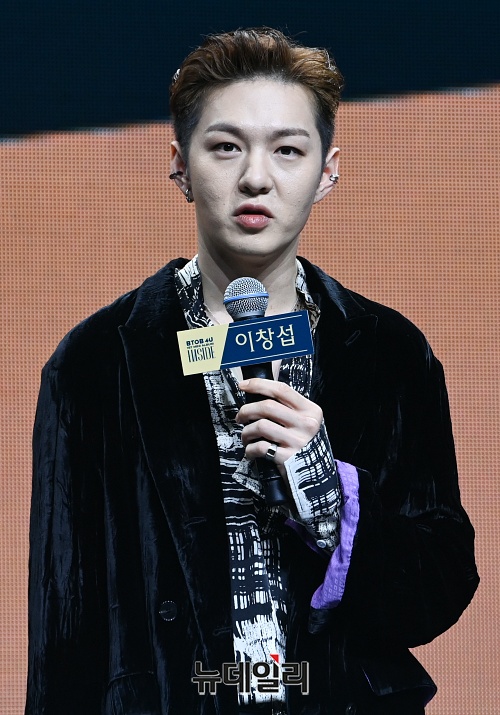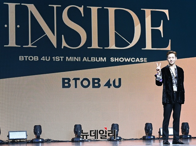 아이돌그룹 비투비 포유(BTOB 4U) 멤버 이창섭이 16일 오후 서울 광진구 예스24 라이브홀에서 열린 미니 1집 '인사이드(INSIDE)' 쇼케이스에서 포토타임을 갖고 있다.
