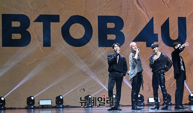 아이돌그룹 비투비 포유(BTOB 4U)가 16일 오후 서울 광진구 예스24 라이브홀에서 열린 미니 1집 '인사이드(INSIDE)' 쇼케이스에서 무대를 선보이고 있다.