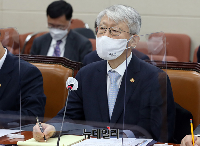 최기영 과학기술정보통신부 장관이 17일 오전 국회에서 열린 과학기술정보방송통신위원회 전체회의에 출석해 의원들의 질문에 답하고 있다. (사진=공동취재단)