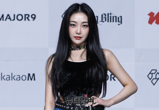 신인 걸그룹 '블링블링(Bling Bling)'의 멤버 마린이 17일 오전 온라인으로 열린 데뷔싱글 앨범'G.G.B(지지비)' 쇼케이스에서 포토타임을 갖고 있다.