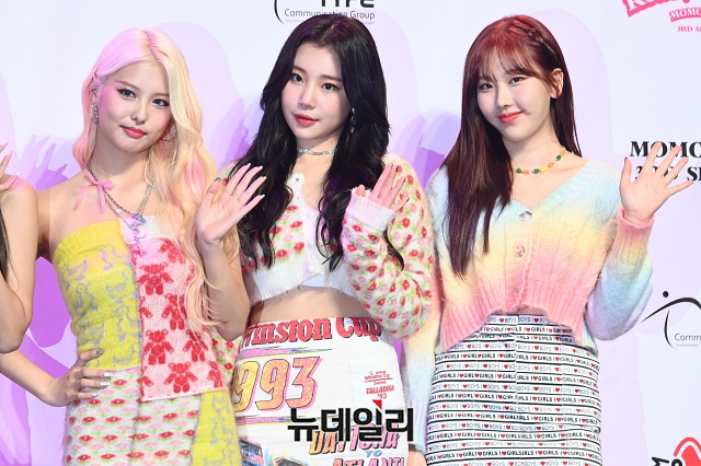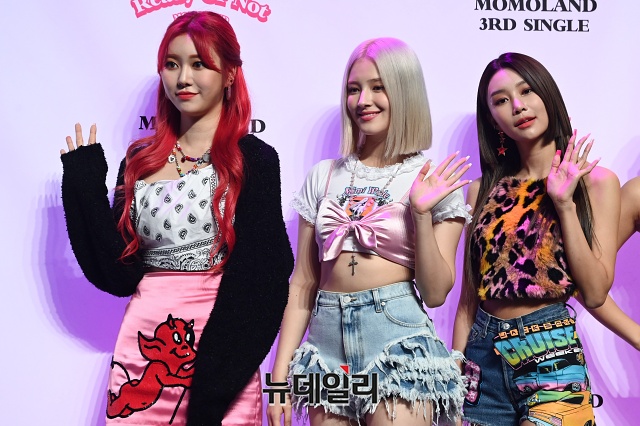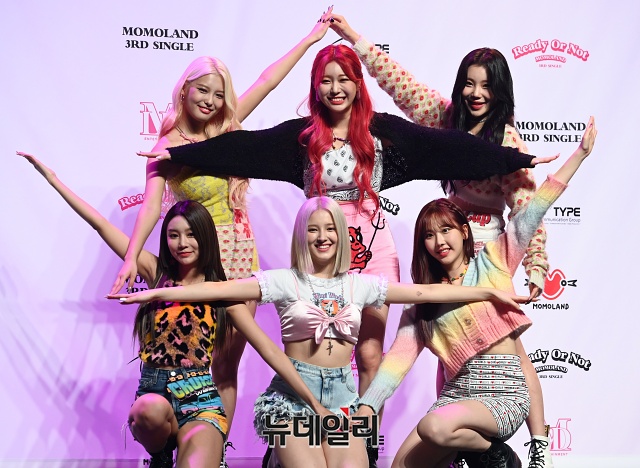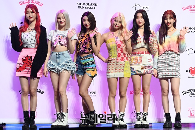 걸그룹 모모랜드가 17일 오후 서울 광진구 예스24 라이브홀에서 열린 3집 싱글 '레디 오어 낫(Ready Or Not)' 쇼케이스에서 포토타임을 갖고 있다.