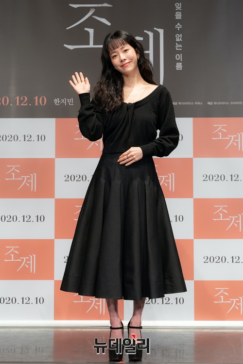 배우 한지민이 17일 오전 온라인으로 진행된 영화 '조제(감독 김종관)' 제작보고회에서 포토타임을 갖고 있다.