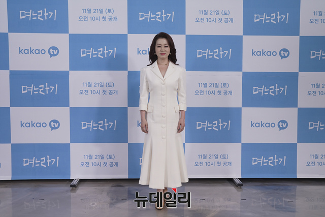 배우 문희경이 17일 오후 온라인으로 진행된 카카오TV 드라마 '며느라기(연출 이광영, 작가 이유정)' 제작발표회에서 포토타임을 갖고 있다. 제작발표회에는 이광영 PD, 배우 박하선, 권율, 문희경, 백은혜, 최윤라가 참석했다.