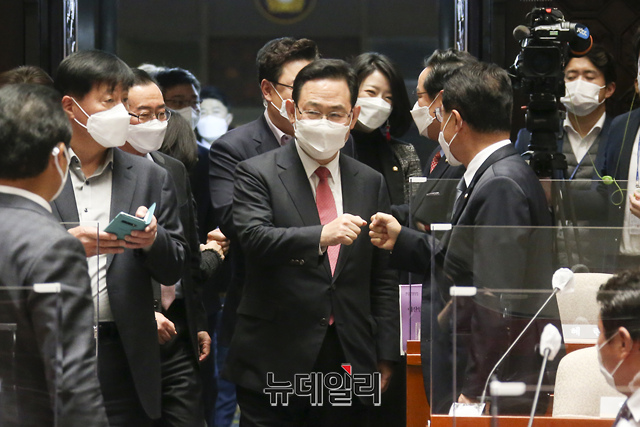 [포토] 의원총회 참석하는 주호영 국민의힘 원내대표