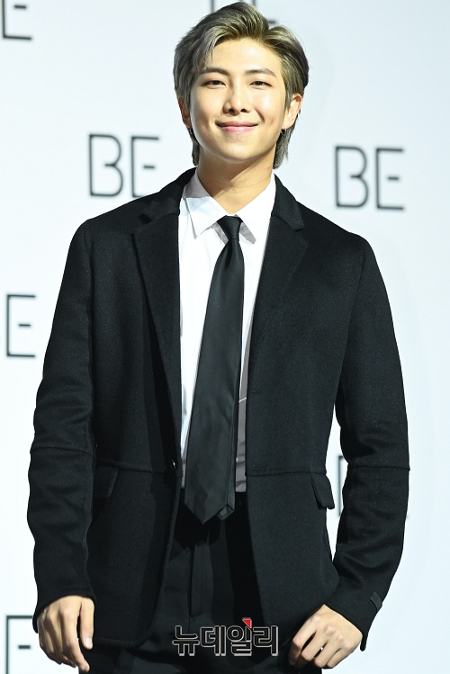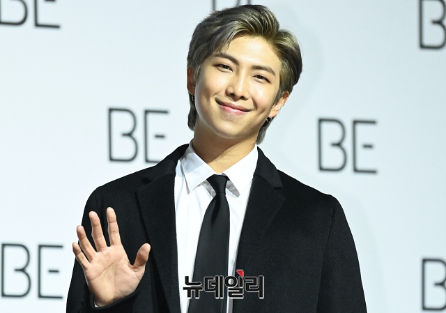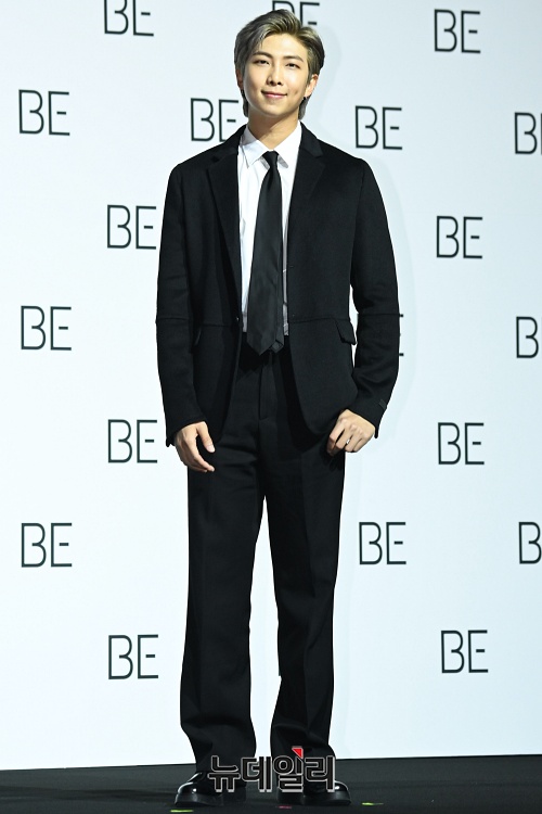 방탄소년단 멤버 RM이 20일 오전 서울 중구 동대문디자인플라자에서 열린 새 앨범 'BE(비)' 글로벌 기자간담회에서 포토타임을 갖고 있다.