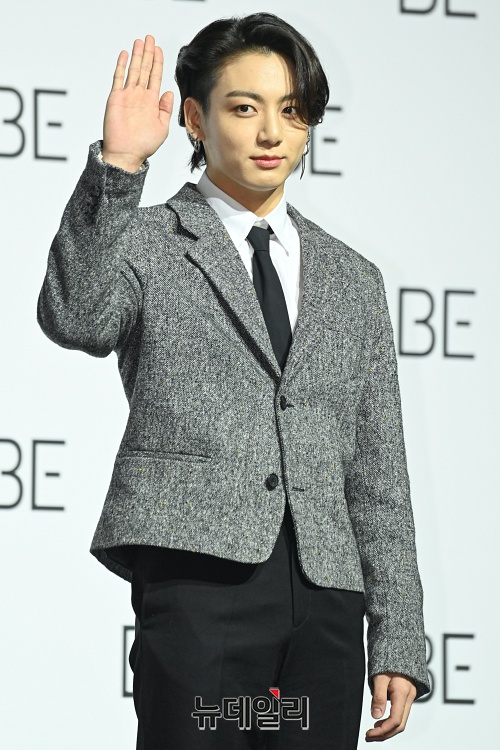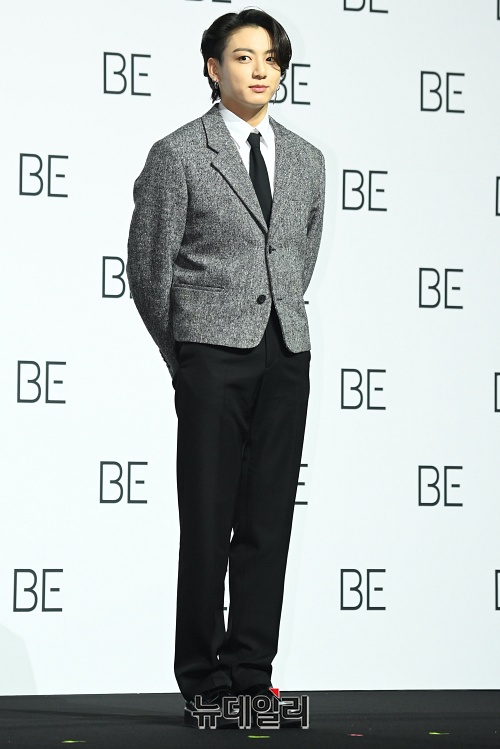 방탄소년단 멤버 정국이 20일 오전 서울 중구 동대문디자인플라자에서 열린 새 앨범 'BE(비)' 글로벌 기자간담회에서 포토타임을 갖고 있다.
