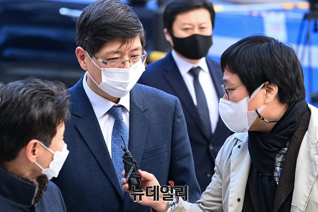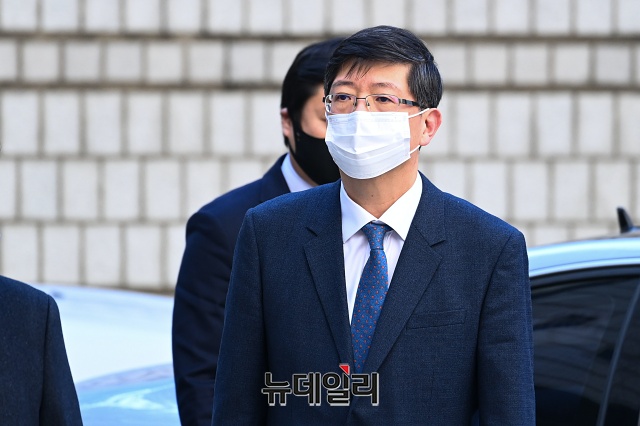 공직선거법 위반 혐의로 재판에 넘겨진 김홍걸 무소속 의원이 23일 오후 서울 서초구 서울고등법원에서 열린 1차 공판에 출석하고 있다.