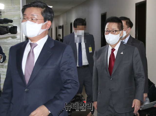 [포토] 입장하는 전해철 위원장과 박지원 원장
