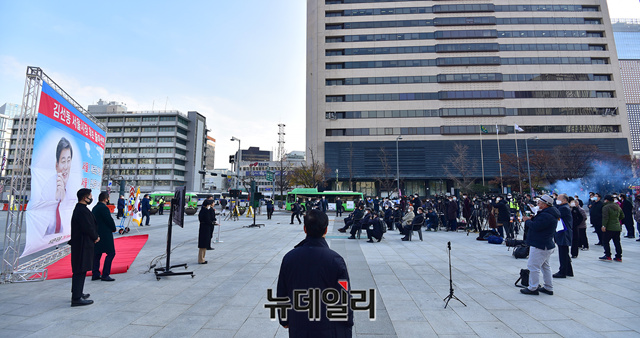 김선동 국민의힘 전 사무총장이 25일 오전 서울 광화문광장에서 서울시장 출마선언을 마치고 지지자들에게 큰절을 올리고 있다.이날 김 전 사무총장은 출마선언문 낭독 도중 발전기가 멈추면서 마이크가 작동하지 않자 육성으로 낭독을 이어갔다. 광장에 지지자들이 대거 몰리자 경찰은 거리유지를 호소하며 안전선을 설치했다.김 전 사무총장은 출마선언문을 통해 △부동산 지옥이 된 서울을 시민의 편에서 해결 △이념과 진영 논리 없는 '용광로 서울' △ 기회 도전의 특구 수도서울을 만들겠다는 공약을 제시했다.