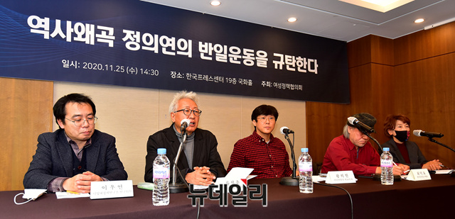 시민단체 여성정책협의회가 25일 오후 서울 중구 한국프레스센터에서 '역사왜곡 정의연의 반일운동 규탄한다'를 주제로 세미나를 개최했다.