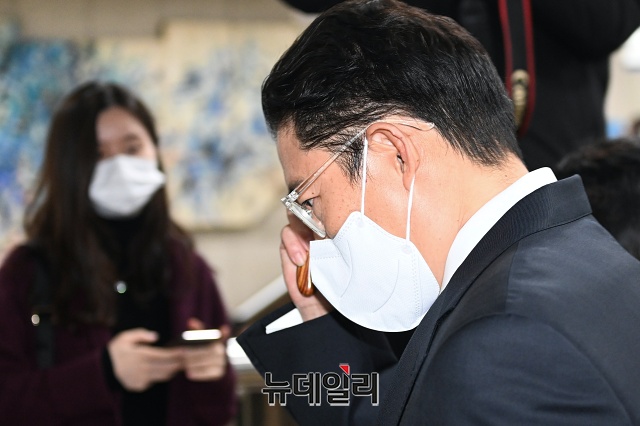 조현준 효성그룹 회장이 25일 오후 서울 서초구 서울고등법원에서 열린 항소심 선고공판을 마치고 법정을 나서고 있다.