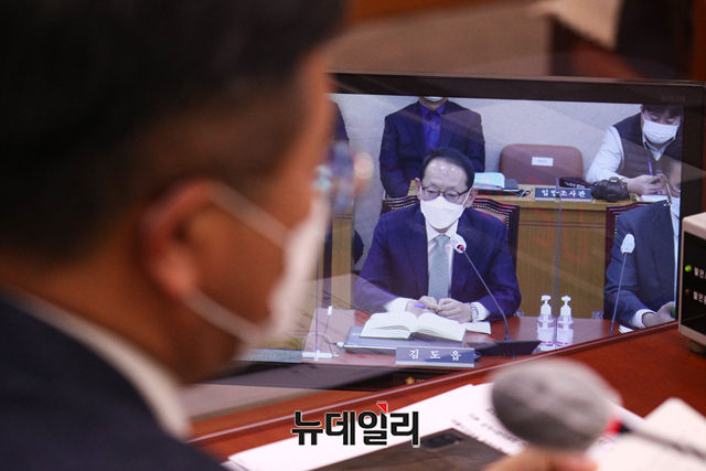 김도읍 국민의힘 법사위 간사가 26일 오전 국회에서 열린 법사위 전체회의에서 발언을 하고 있다. (사진=공동취재단)