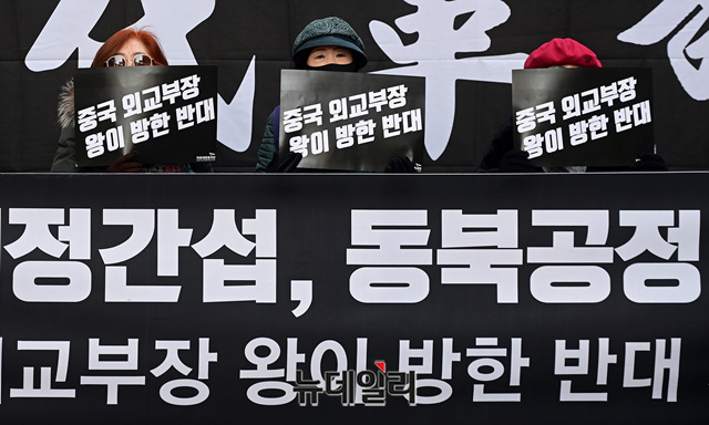 [포토] "내정간섭-동북공정 중단하라"… 시민단체, 왕이 방한 中대사관 항의방문