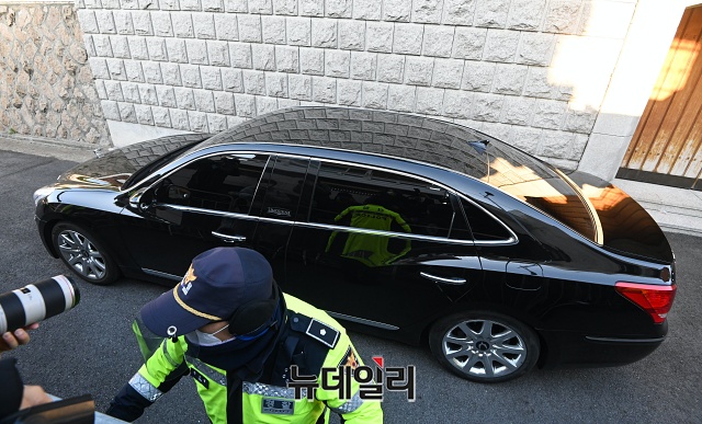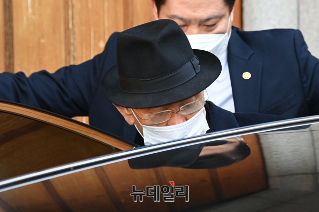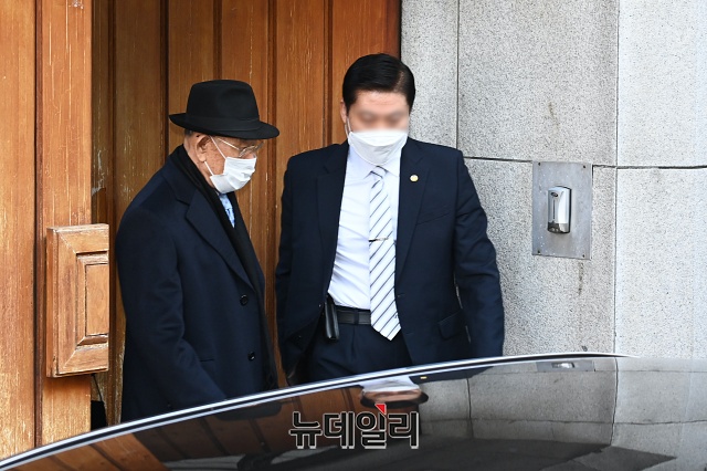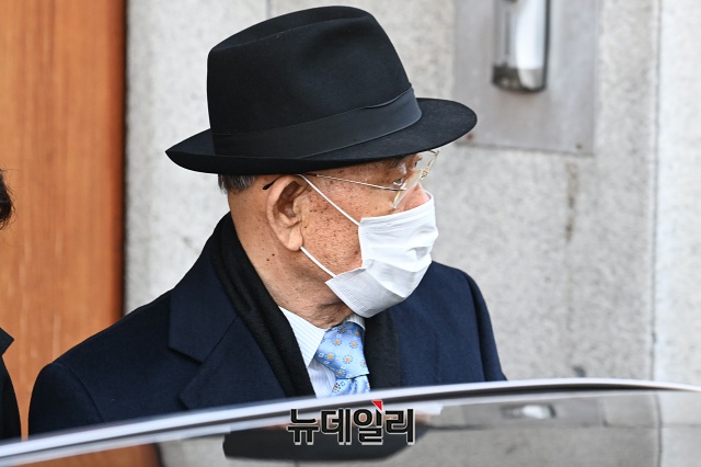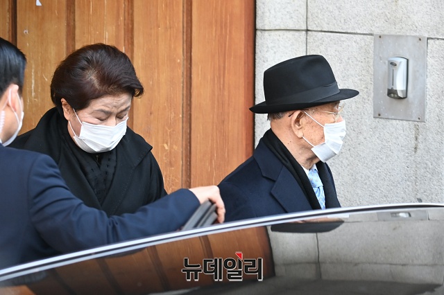 전두환 전 대통령이 30일 오전 광주지방법원에서 열리는 고(故) 조비오 신부에 대한 사자명예훼손 혐의 관련 선고공판에 출석하기 위해 서울 서대문구 연희동 자택을 나서고 있다.