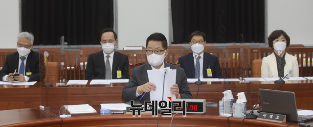 박지원 국가정보원장이 30일 오후 국회에서 열린 정보위원회 전체회의에 출석해 앉아 회의시작을 기다리고 있다. (사진=공동취재단)