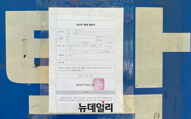 '코로나19(중국 우한 폐렴)' 확진자가 발생한 서울 동대문구의 한 탁구장에 30일 오후 코로나로 인한 임시 영업중단 안내문이 붙어있다.