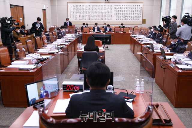 모종화 병무청장, 서욱 국방부 장관, 왕정홍 방위사업청장이 30일 오후 국회에서 법제사법위원회 전체회의에 참석한 가운데 회의가 열리고 있다. (사진=공동취재단)