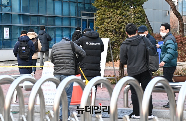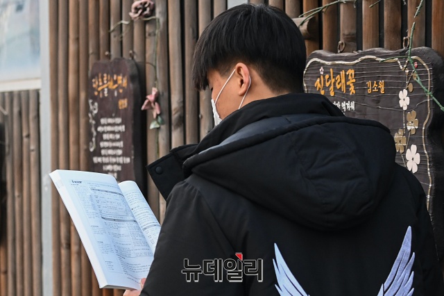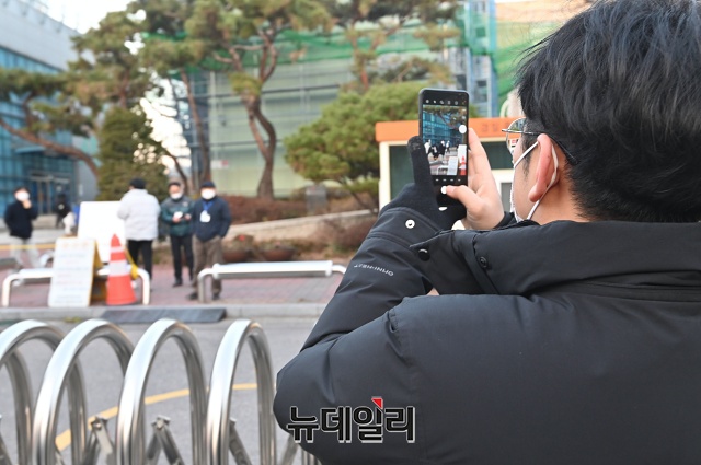 2021학년도 대학수학능력시험일인 3일 오전 서울 성동구 경일고등학교에서 학부모가 수험생들을 바라보고 있다.올해 수능일은 11월 19일이었으나 코로나19 여파로 2주 연기됐다. 이번 수능은 일반 수험생, 자가격리자, 확진자로 나눠 관리된다. 수험생들은 시험 내내 마스크를 착용해야 하고 책상 앞면에는 칸막이가 설치된다. 확진자는 병원·생활치료 시설에서 감독관 보호 조치 하에 수능을 치른다.오전 8시 40분 1교시 국어영역으로 시작해 오후 5시 40분 제2외국어/한문을 마지막으로 마무리된다. 올해 수능 응시자는 49만 3,433명이다. 성적은 12월 23일 통지된다.