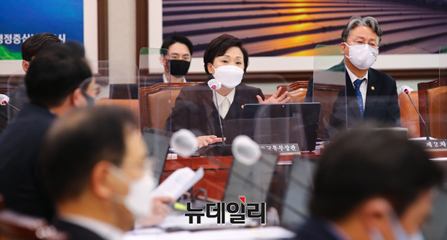 김현미 국토교통부장관이 3일 오전 국회에서 열린 국토교통위원회 전체회의에서 의원들의 질문에 답하고 있다. (사진=공동취재단)