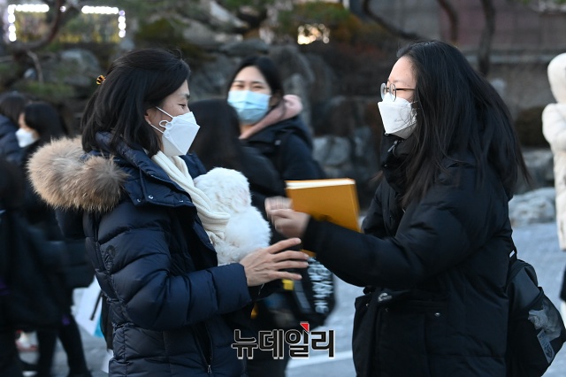 [포토] 수험생 반기는 학부모 "우리딸 수고했어"