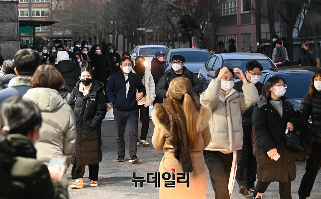 2021학년도 대학수학능력시험일인 3일 오후 서울 송파구 잠실여자고등학교에서 시험을 마친 수험생들이 고사장을 나서고 있다.