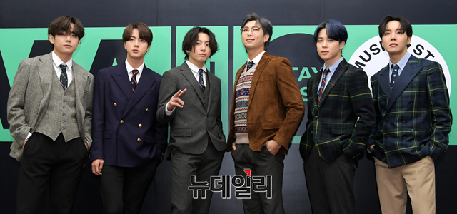 그룹 방탄소년단 (RM, 진, 슈가, 제이홉, 지민, 뷔, 정국)이 5일 오후 진행된 멜론뮤직어워드 2020(MMA 2020) 포토월에 참석해 포즈를 하고 있다.