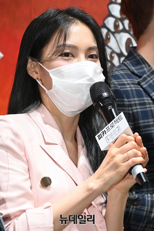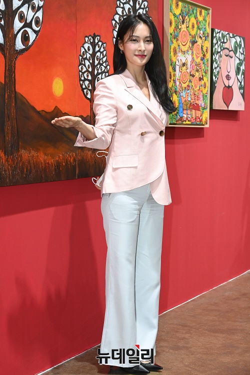걸그룹 카라 출신 박규리가 9일 오후 서울 강남구 피카프로젝트 청담본점에서 열린 전시 '임하룡과 한상윤의 그림파티'에서 포토타임을 갖고 있다.
