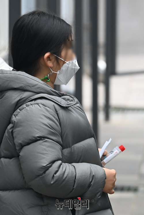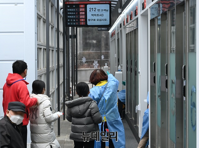 '코로나19(중국 우한 폐렴)' 신규확진자가 682명 발생한 10일 오후 서울 서초구 보건소에 설치된 선별진료소에서 시민들이 검사를 받기 위해 줄을 서 있다.