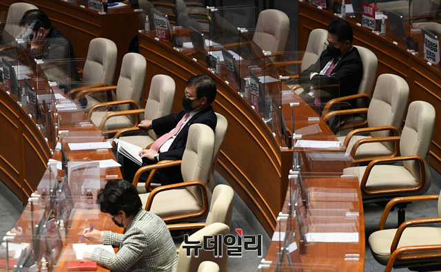 여야 의원들이 11일 오전 국회에서 열린 본회의에서 국정원법 개정안에 대한 무제한 토론(필리버스터)에 참석해 피곤한 모습을 보이고 있다. (사진=공동취재단)