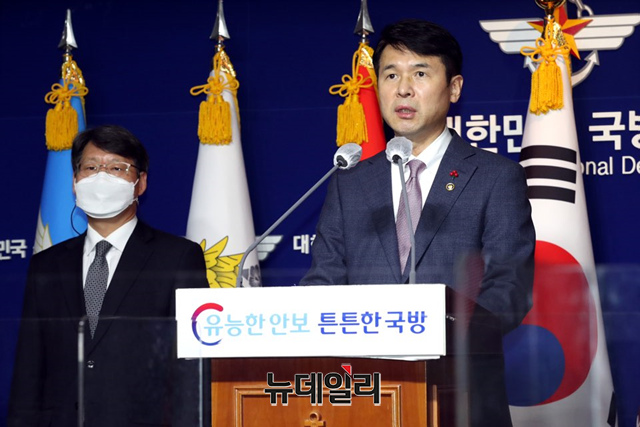 최창원 국무조정실 국무1차장이 11일 서울 용산구 국방부에서 주한미군기지 반환 발표를 하고 있다. 한미 SOFA(Status of Forces Agreement) 합동위원회를 통해 용산기지를 포함한 12개 주한미군 기지의 반환의 합의했다. (사진=국방부)