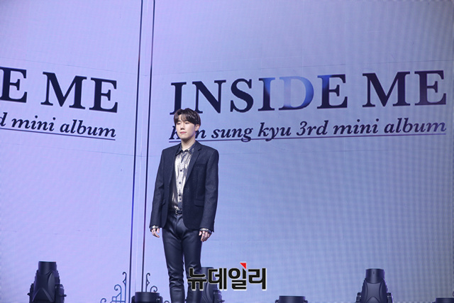 인피니트 김성규가 14일 오후 온라인으로 열린 3번째 미니앨범 'INSIDE ME(인사이드 미)' 쇼케이스에서 포토타임을 갖고 있다.