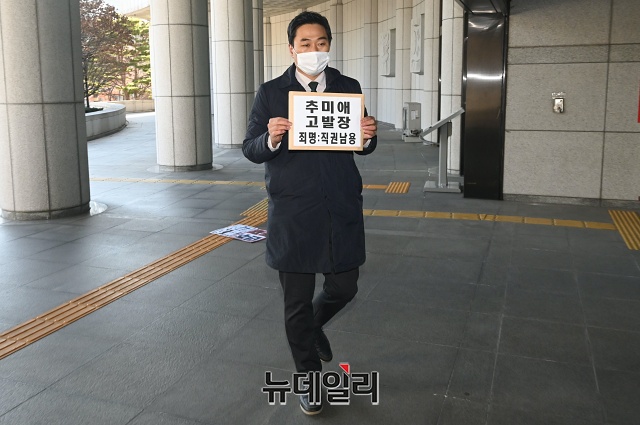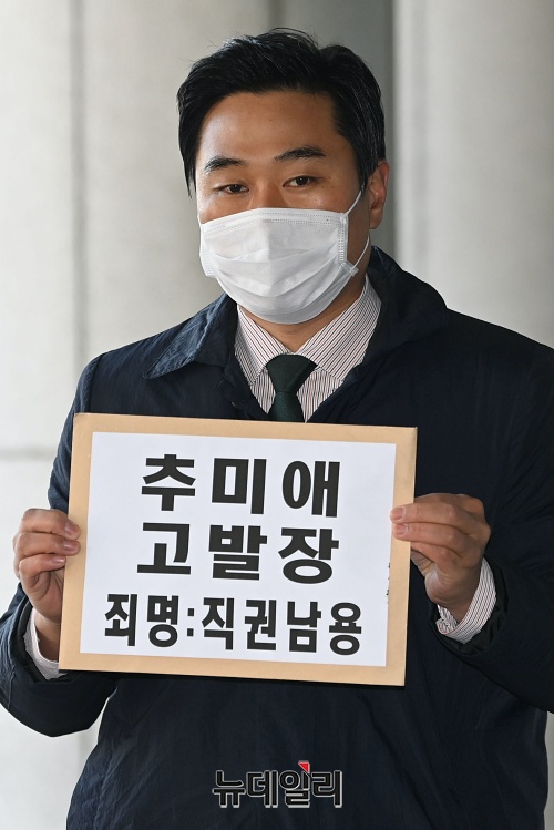 이종배 법치주의바로세우기행동연대 대표가 17일 오전 서울 서초구 대검찰청에서 '추미애 장관 고발 기자회견'을 갖고 있다.