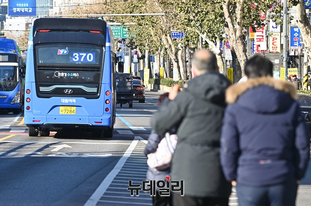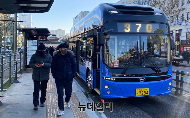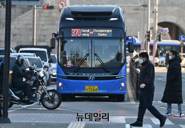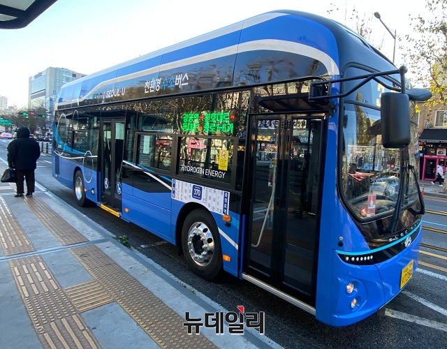 370번 수소버스가 17일 오후 서울 종로구 종로5가역 인근에서 손님을 태우기 위해 정차해 있다.