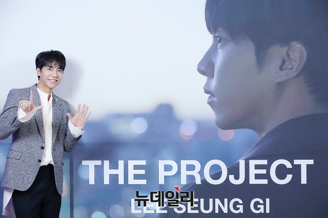 가수 이승기가 17일 오후 온라인으로 진행된 7집 정규앨범 'THE PROJECT(더 프로젝트)' 기자간담회에서 포토타임을 갖고 있다.