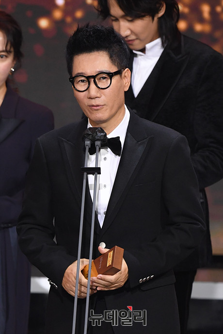 프로그램 런닝맨 출연진들이 19일 오후 '2020 SBS 연예대상'에서 골든콘텐츠상을 수상하고 수상소감을 밝히고 있다. 연예대상은 8시40분부터 SBS에서 생방송으로 진행된다. (사진=SBS)