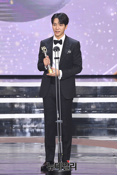 예능 '집사부일체' 출연하고 있는 이승기가 19일 오후 '2020 SBS 연예대상'에서 핫스타상을 수상하고 소감을 밝히고 있다. 연예대상은 8시40분부터 SBS에서 생방송으로 진행된다. (사진=SBS)