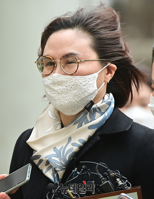 자녀 입시비리·사모펀드 의혹 증거인멸교사 등 총 15개 혐의로 기소된 정경심 동양대 교수가 23일 오후 서초구 서울중앙지방법원에서 열린 선고공판에 출석하고 있다.