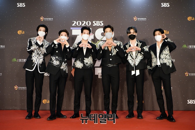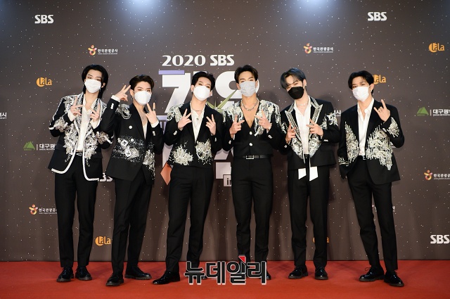 아이돌그룹 몬스타엑스가 25일 오후 대구에서 진행된 '2020 SBS 가요대전 in DAEGU'에서 포토타임을 갖고 있다.이날 행사에는 붐, 김희철, 에이프릴 나은이 사회를 맡았다. 방탄소년단, 트와이스, 세븐틴, GOT7(갓세븐), 몬스타엑스, 마마무, 제시, 뉴이스트, 여자친구, 오마이걸, 아이즈원, 더보이즈, 스트레이 키즈, (여자)아이들, 에이티즈, ITZY(있지), 투모로우바이투게더, 에이프릴, 모모랜드 에스파 등이 참석했다. 저녁 7시 30분 SBS에서 생방송. (사진=SBS)