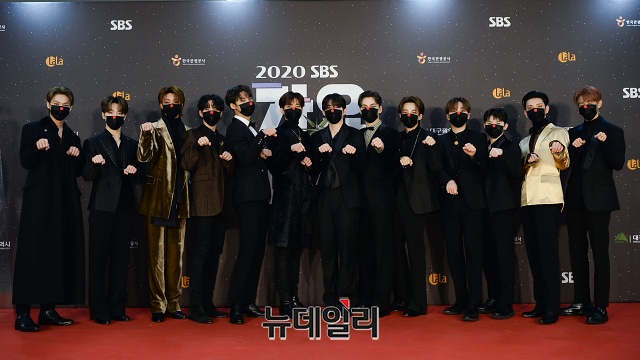 아이돌그룹 세븐틴이 25일 오후 대구에서 진행된 '2020 SBS 가요대전 in DAEGU'에서 포토타임을 갖고 있다.이날 행사에는 붐, 김희철, 에이프릴 나은이 사회를 맡았다. 방탄소년단, 트와이스, 세븐틴, GOT7(갓세븐), 몬스타엑스, 마마무, 제시, 뉴이스트, 여자친구, 오마이걸, 아이즈원, 더보이즈, 스트레이 키즈, (여자)아이들, 에이티즈, ITZY(있지), 투모로우바이투게더, 에이프릴, 모모랜드 에스파 등이 참석했다. 저녁 7시 30분 SBS에서 생방송. (사진=SBS)
