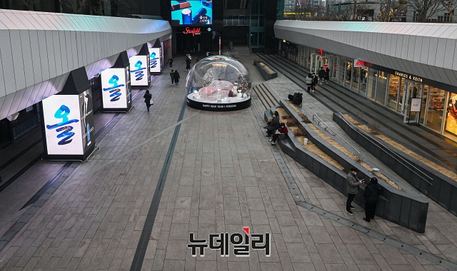 정부가 사회적 거리두기 2.5단계를 연장한 27일 오후 서울 강남구 코엑스 내 쇼핑몰이 한산한 모습을 보이고 있다.정부는 28일 종료 예정이던 사회적 거리두기 2.5단계를 2021년 1월 3일까지 연장한다고 밝혔다. 카페는 영업시간과 관계없이 포장·배달만 가능하고 음식점은 오후 9시 이후 포장·배달만 허용된다. 추가적으로 패스트푸드점도 커피·음료·디저트류를 주문할 때 포장·배달만 허용된다.권덕철 중대본 1차장(보건복지부 장관)은 "다음 1주 상황을 지켜보며 모든 거리두기 조치를 종합적으로 판단, 1월 3일 이전에 조정할 예정"이라고 밝혔다.