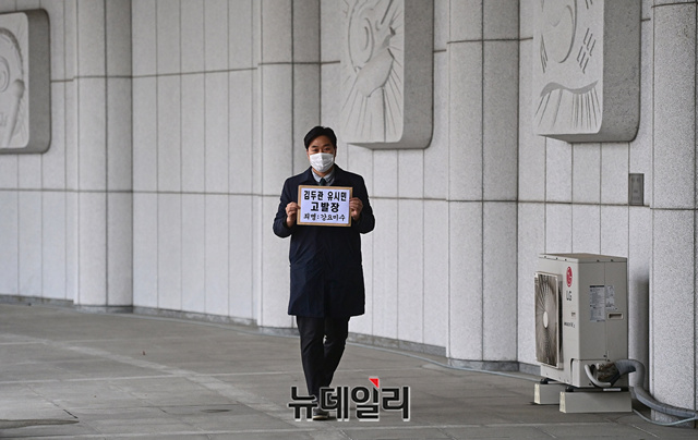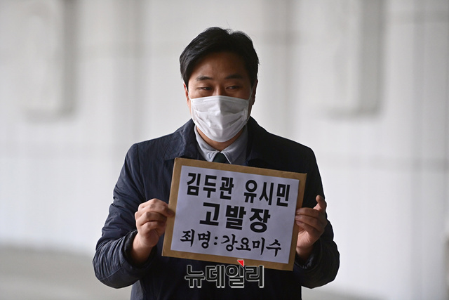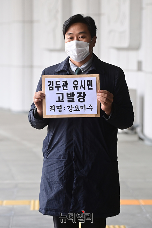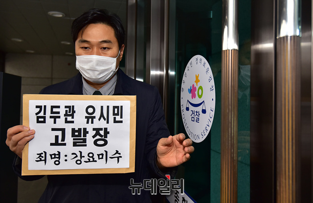 이종배 법치주의바로세우기 행동연대 대표가 29일 오전 서울 서초구 대검찰청으로 김두관 더불어민주당 의원과 유시민 노무현재단 이사장을 강요미수 혐의로 형사고발하기 위해 청사로 들어서고 있다.이 대표는 "김 의원과 유 이사장이 여권의 강력한 실세라는 지위를 이용해 최성해 전 동양대학교 총장에게 전화를 걸어 허위사실을 말할 것을 강요한 것은 명백한 사법방해"라며 "최 전 총장이 거부하자 동료 정치인들과 교육부에서 무차별적 의혹을 제기해 학교를 떠나게 만든 것은 엄단해야할 정치보복"이라고 했다.형법 제324조에 따르면 '강요미수'는 폭행 또는 협박으로 사람의 권리행사를 방해하거나 의무 없는 일을 하게 한 자에게 5년 이하의 징역 또는 3천만원 이하의 벌금에 처하게 된다.