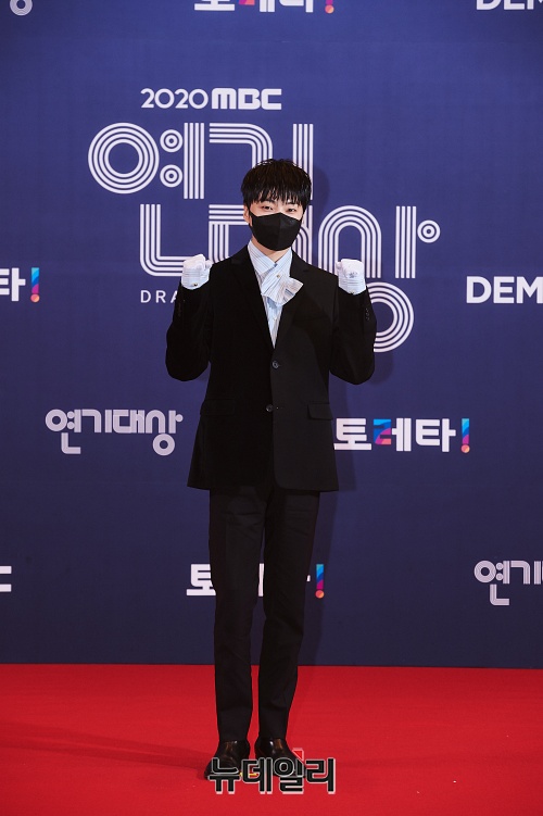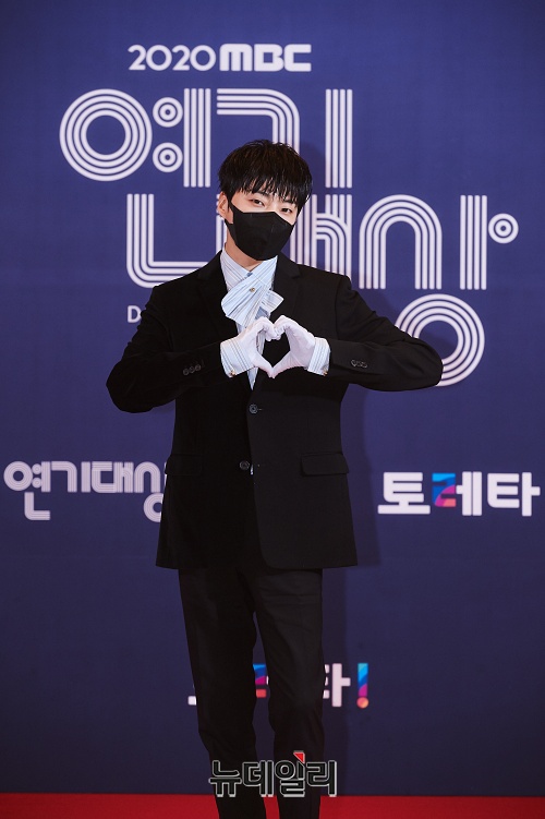 가수 겸 배우 강승윤이 30일 오후 서울 마포구 상암MBC에서 열린 '2020 MBC 연기대상'에서 포토타임을 갖고 있다.