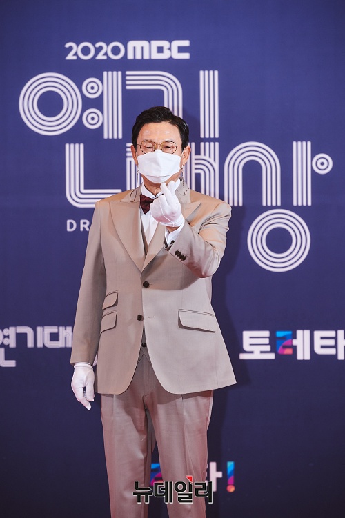 배우 김응수가 30일 오후 서울 마포구 상암MBC에서 열린 '2020 MBC 연기대상'에서 포토타임을 갖고 있다.