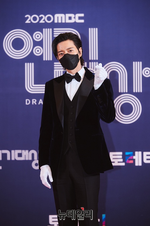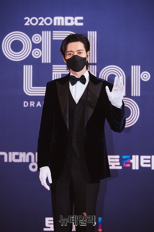 배우 박해진이 30일 오후 서울 마포구 상암MBC에서 열린 '2020 MBC 연기대상'에서 포토타임을 갖고 있다.